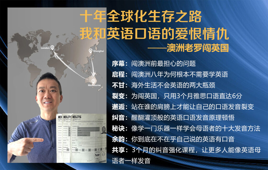 岁月如梭,老罗踏上全球化生存之旅已经10年了,很多人都以为我作为用新媒体运营拿到澳洲PR的188A第一人,又是自己DIY申请到了英国的创新签证,英语水平一定很好,或者起码不会是我的软肋吧!其实我和英语口语的爱恨情仇,绝对是我全球化生存之旅上的一道浓妆艳抹的风景线,赶快围观老罗总结的9个亲历的篇章,一起探讨成年人能否用3个月,通过强化纠音达到英语母语者的口语水平呢?