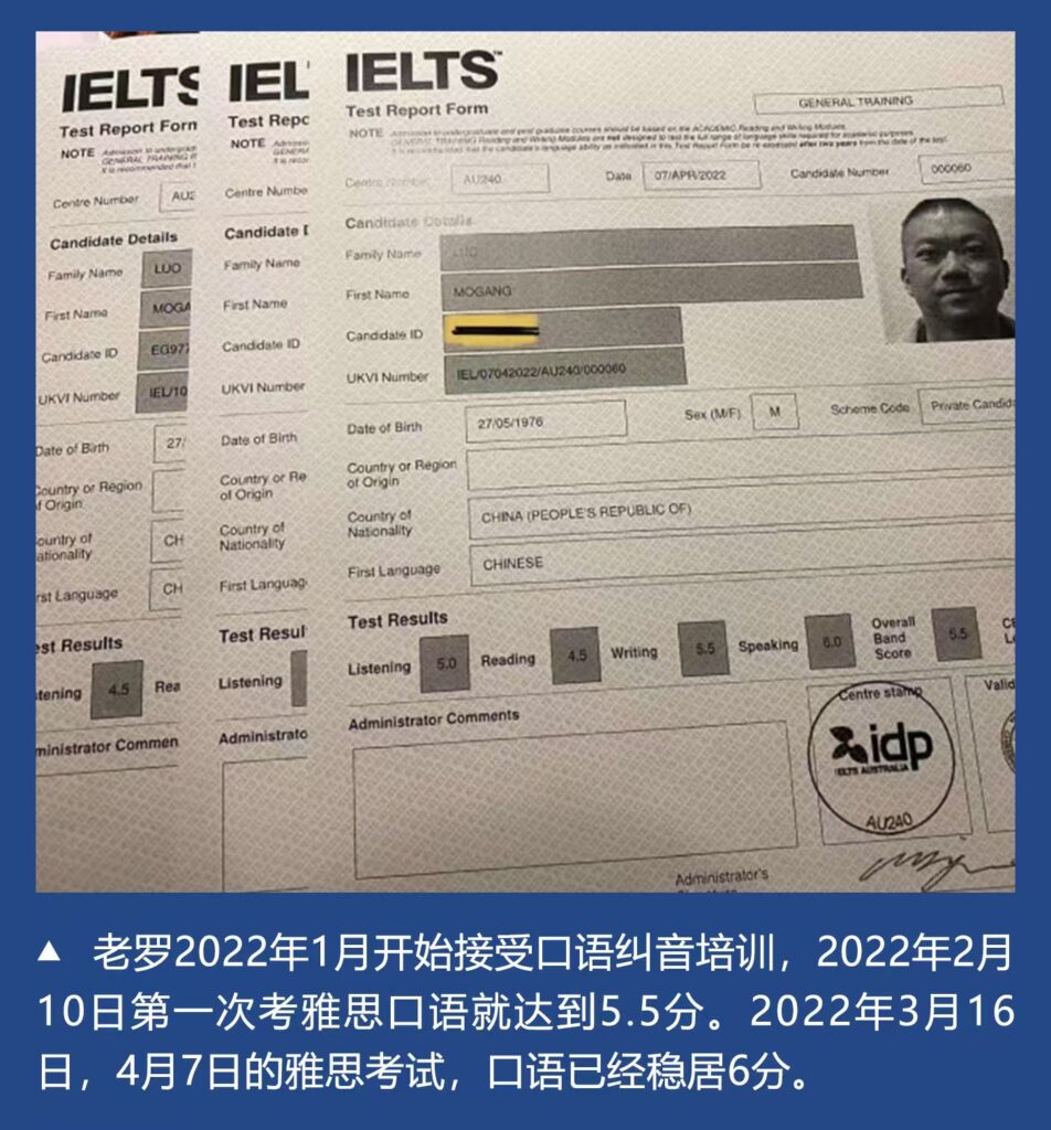 老罗是为了在最短时间内达到雅思5.5分从而满足申请英国创新签证的条件,在2022年初就通过自己的各种人脉,寻找最优秀的英语老师。最终有幸邂逅晓慧老师后,不仅通过3个月业余时间的强化培训就迅速达标,自己的口语也从0开始快速的突破到6分之上的水平。