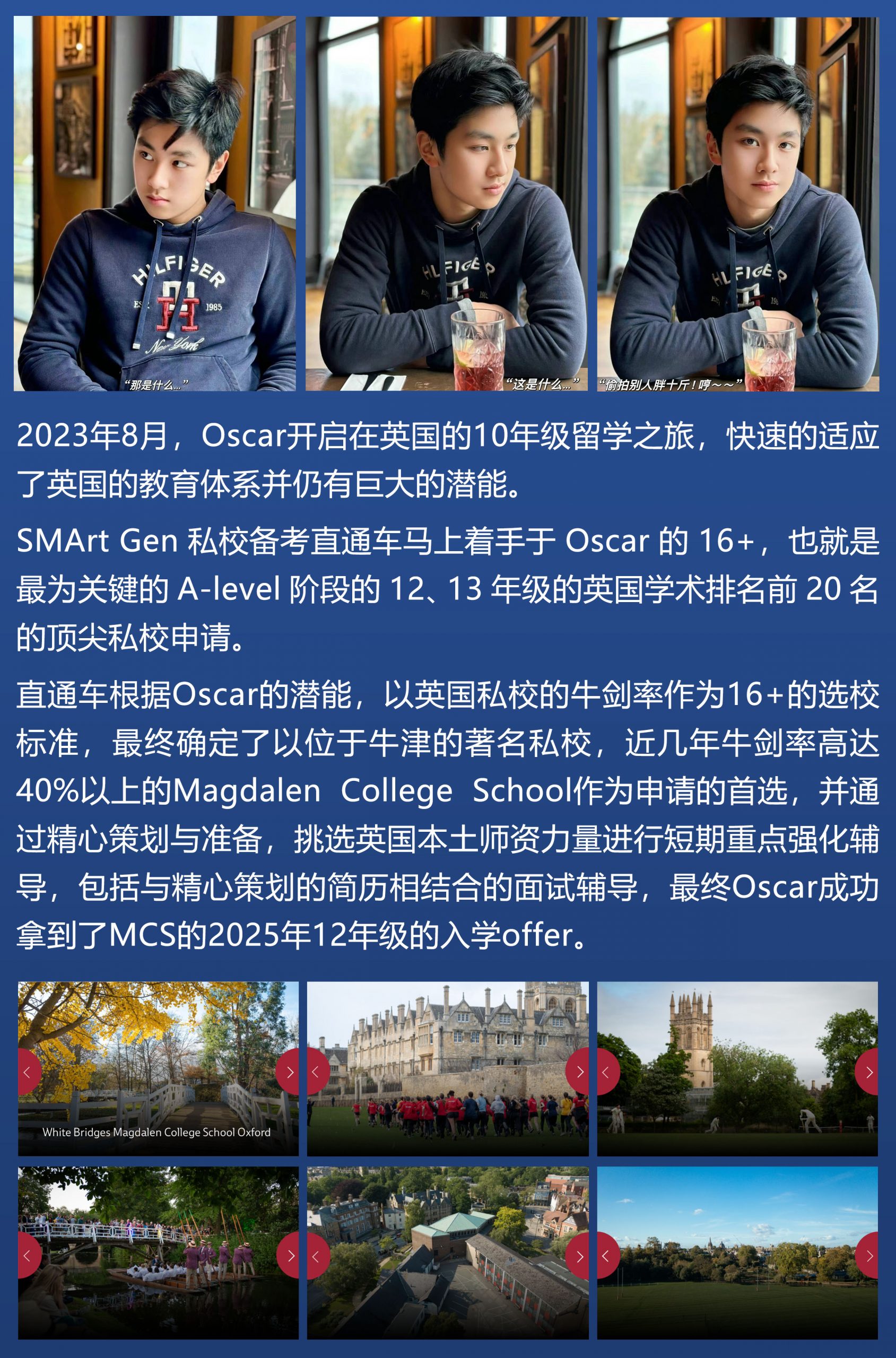 SMArt Gen首席代言人Oscar Luo,于2023年8月开始在英国的10年级留学之旅,其备考英国私校之旅始于2021年。
