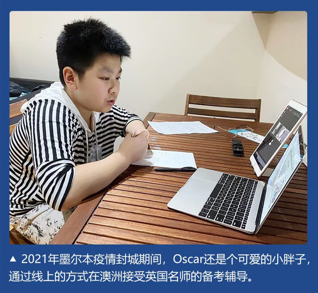 Oscar的英国备考辅导老师是一位有着40多年英国教学经验的”老司机”,西敏斯预备学校前校长,德威公学预备学校前副校长。她通过和Oscar的交流,根据他的性格特点、兴趣爱好,挑选出最适合的申请学校建议,并为Oscar进行了系统的英语写作和面试指导,最终帮助Oscar在Year10这个非主要的私校申请入学年龄段,成功申请到了心仪的英国私校。
